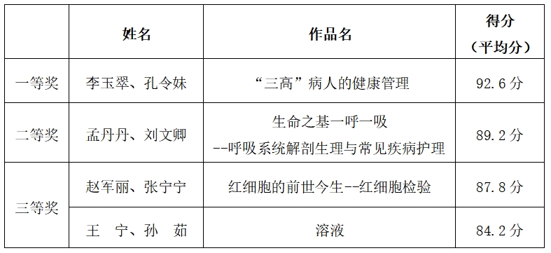 2023年度衡水卫生学校教师教学能力比赛结果